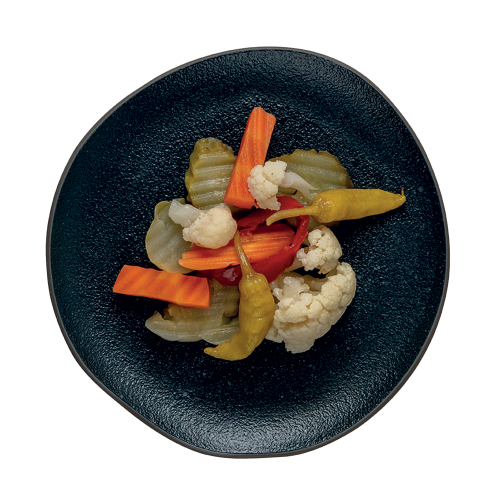 Συστατικά:Πίκλες (λάχανο, κουνουπίδι, καρότο, ντομάτα, αγγούρι, κόκκινες και πράσινες πιπεριές. Πιθανόν να περιέχει ίχνη από μαλάκια, ψάρι, σόγια, γάλα, σέλινο), νερό, αλάτι, ξύδι, ρυθμιστές οξύτητας: γαλακτικό οξύ, κιτρικό οξύ, Ε260, αντιοξειδωτικό: ασκορβικό οξύ, συντηρητικά: Ε211, Ε202, μεταδιθειώδες κάλιο