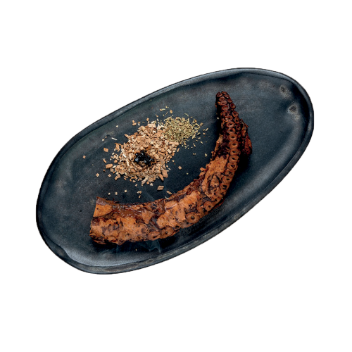 Συστατικά: Χταπόδι (Octapus vulgaris) πλοκάμι καπνιστό, ξύδι, αλάτι, ζάχαρη, μπαχαρικά.