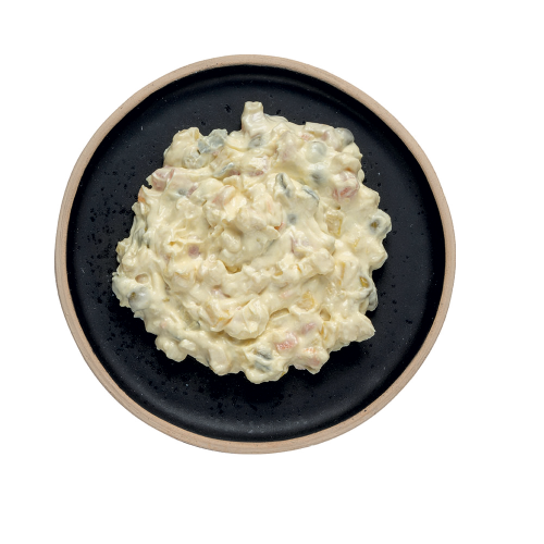 Συστατικά: Μαγιονέζα 50% (Φυτικό έλαιο (σογιέλαιο ή ηλιέλαιο), νερό, κρόκος αυγού παστεριωμένος, Μουστάρδα 3%, φυτικές ίνες), φρέσκια πατάτα 31%, λαχανικά σε μεταβαλλόμενες αναλογίες 23% (καρότο, αγγουράκι, αλάτι, ξύδι, ζάχαρη, καρυκεύματα, αρωματικές ύλες, ρυθμιστής οξύτητας: Ε509), αρακάς 5%, ΕΞΑΙΡΕΤΙΚΟ ΠΑΡΘΕΝΟ ΕΛΑΙΟΛΑΔΟ 3,3%, Μουστάρδα 2,4% (νερό, ξύδι, σινάπι, φυσικό άμυλο καλαμποκιού, αλάτι, ζάχαρη, άρωμα μουστάρδας), ζωμός λαχανικών (σόγια, σέλινο), ζάχαρη, αλάτι, ξύδι, ρυθμιστής οξύτητας: κιτρικό οξύ, συντηρητικά: Ε202, Ε211, Κρόκος Κοζάνης (ΠΟΠ) 0,008%. Πιθανόν να περιέχει ίχνη από τυρί.
